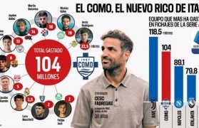 意甲转会支出第二!阿斯:科莫今夏已花费1.04亿欧签下10名新援